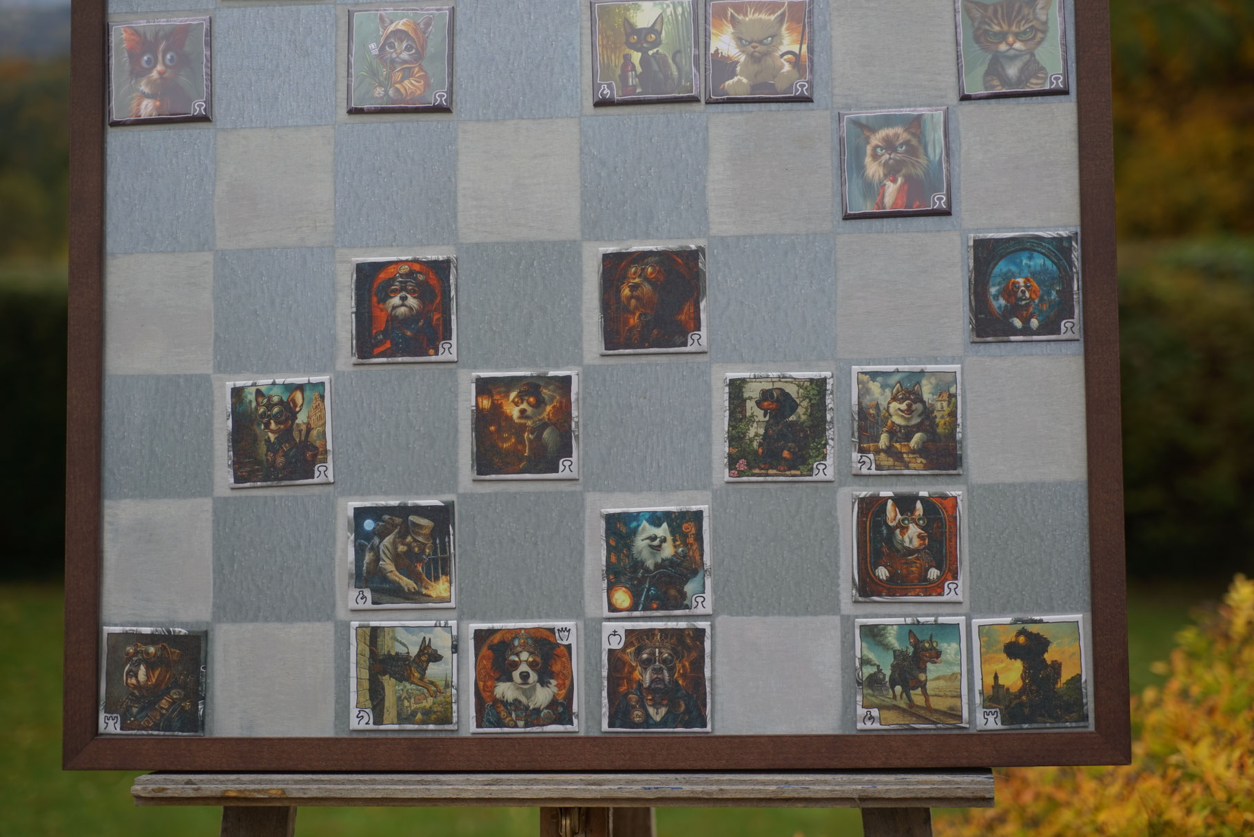 Ferromagnetisches Schachbrett im Format 60 x 60 als Untergrund für Kühlschrankmagneten in einer praktischen Versandröhre.